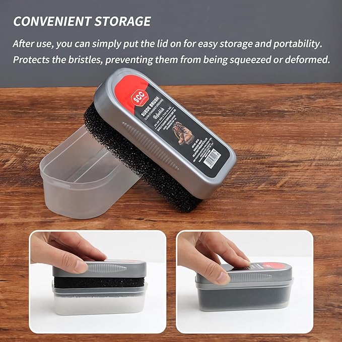 - Package Contents: You will get a horsehair cap brush + two cleaning sponge brushes + a drawstring storage bag, which are very convenient to carry in daily use.