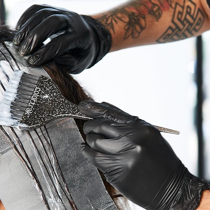 - SUPERIOR LATEX FREE MATERIAL: A salon non-negotiable! These disposable, latex-free and powder-free vinyl gloves are ideal for protecting your hands during color processing and other skin-sensitive salon activities. And our 100% latex-free vinyl is stain resistant so you can color your or their hair, not your hands.