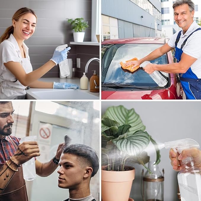 - VERSATILE APPLICATIONS: These plastic spray bottles are versatile and can be used for various purposes. they are suitable for both household and professional use. Whether you need to spray water, cleaning solutions, hair products, or other liquids, these bottles have you covered.