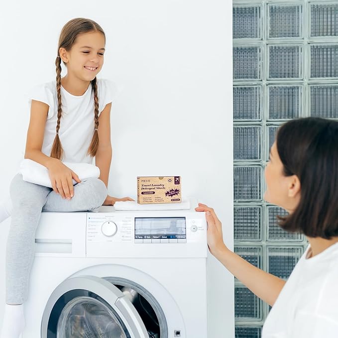 Poesie Travel Laundry Detergent Strips 40 Sheets Liquidless Laundry Soap Sheet for Travel Dorm Home Lavender