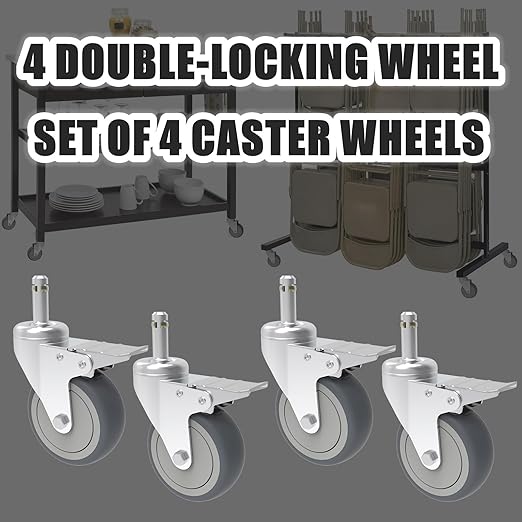 - EASY INSTALLATION - Set of 4, 2 Double-locking stem casters & 2 Swivel stem casters, come with 1-3/8 inch length x 7/16 inch diameter grip ring stem, 19/32" OD plastic sockets for quick and secure installation.