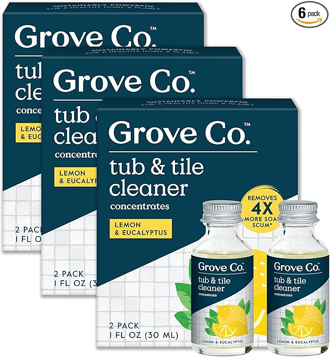 - TUB & TILE CLEANER REFILLS: Grove Co. Tub & Tile Cleaner bulk value refill pack in Lemon & Eucalyptus scent. Pair with our 16-ounce reusable glass spray bottle (sold separately). A durable and mindful housewarming gift to save plastic waste