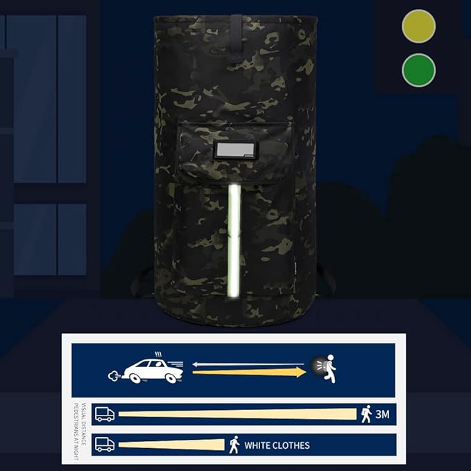 - [Large capacity & multi-pocket design】The laundry bag backpack measures 37.5 ''H*15.5 ''L and weighs 17.3oz. The top of the backpack is retractable and can be expanded up to 38" high. With a maximum capacity of 115 liters, it is larger than the average backpack. With a 11.75 "H*11 "L*2 " front pocket, it can hold laundry detergent, underwear, socks, laundry cards, and other accessories. The multi-pocket design makes it easier to find items by sorting them
