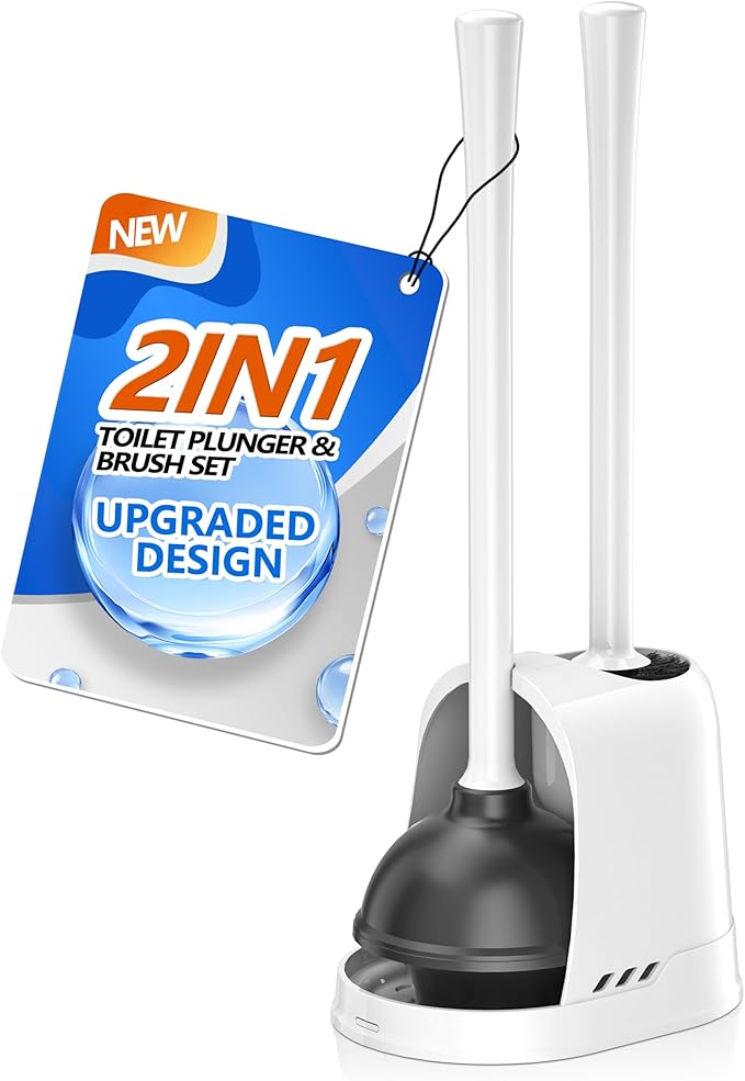 - 2 IN 1 TOILET PLUNGER AND BRUSH SET: Our toilet plunger and toilet bowl brush combe is the perfect tool for your toilet cleaning. Efficient toilet brush and powerful toilet plunger make it easy to handle heavy cleaning and plunging. Stylish design and hygienic storage keep your bathroom neat and clean.