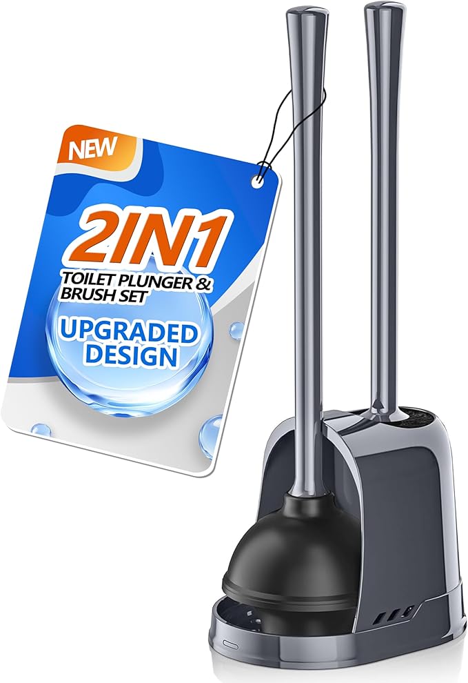 - 2 IN 1 TOILET PLUNGER AND BRUSH SET: Our toilet plunger and toilet bowl brush combe is the perfect tool for your toilet cleaning. Efficient toilet brush and powerful toilet plunger make it easy to handle heavy cleaning and plunging. Stylish design and hygienic storage keep your bathroom neat and clean.