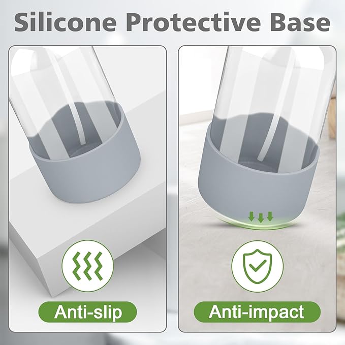 - Silicone Sleeve Protection: The bottom of the glass spray bottle is protected by an added silicone sleeve. The soft silicone is non-slip and slows the impact on the bottle, making glass bottle more sturdy.