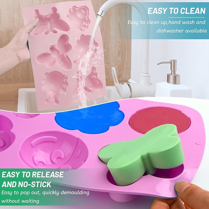 - Silicone Soap Molds: These silicone soap molds are extremely easy to use. Then turn it upside down, this flexible silicone mold offers a non-stick surface that allows the baked goods to pop right out with a little push from the bottom. Remember to place the silicone mold on a baking sheet for easier positioning and removal.