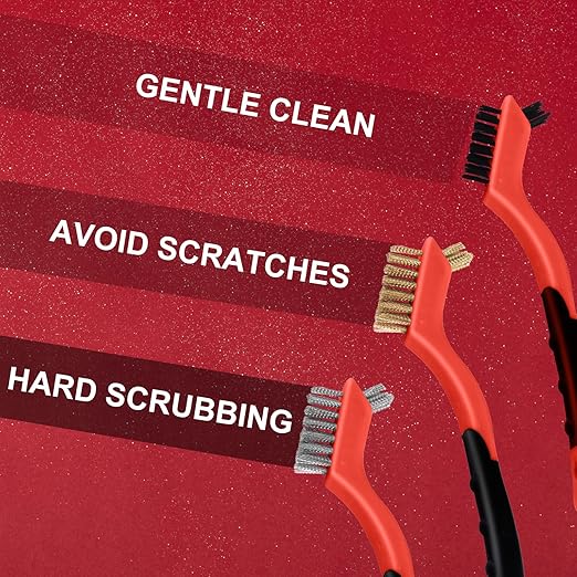 - Rust and Grime Remover: The steel scrubber and brass brush work wonders on removing rust, grime, and corrosion from metal surfaces, car parts, and tools. The nylon brush is perfect for small appliances or more delicate cleaning jobs, ensuring that you can tackle a range of different tasks with ease.