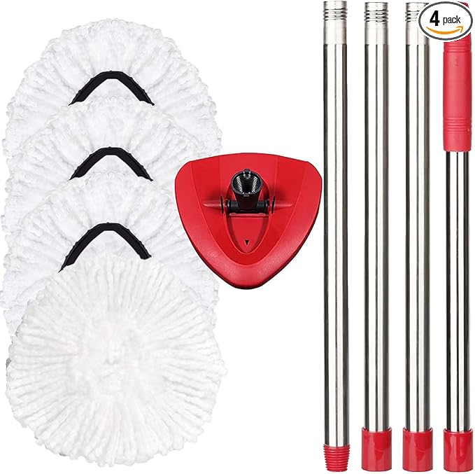 - EASY INSTALLATION: Features a simple snap-on installation with a 3.9-inch diameter and a 5.7-inch diameter on the outside of the triangle, the mop replacement handle is adjustable from 30 inches to 58 inches Our special design gives you more stability when installing and cleaning, please note that the mop head is not compatible with 2-can systems, it is a perfect match for 1-can mop systems.