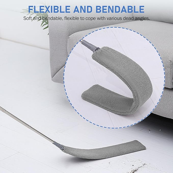 - BENDABLE MICROFIBER DUSTER: Comes with 2 types of duster heads, flexible and bendable duster head can quickly capture and absorb fine dust and hair on the ceiling fan, walls, gap, bedside, furniture bottom.