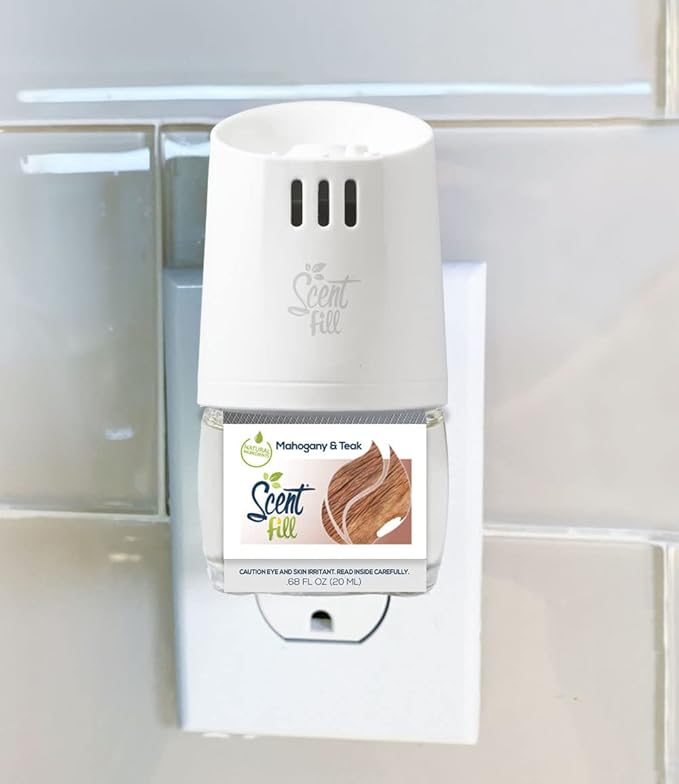 Scent Fill Mahogany Teak Plug in Air Freshener, Scented Oil Refills, 2 Refills + Diffuser