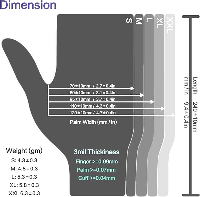 • 【Smooth Finish for Great Comfort and Tactile Sensitivity】Smooth and easy to put on, with these ambidextrous gloves you will no longer have to struggle to find the right fit. As they conform nicely around your hand and fingers they allow for great dexterity, so you can proceed with your daily tasks without the slightest discomfort.