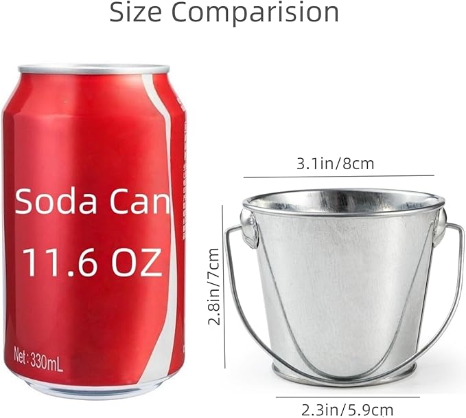 3.1" Galvanized Mini Tin Buckets – 12Pcs Silver Metal Buckets with Handle, Ideal for Party Favors, Bridal Shower and Craft Projects (Silver, 3.1")