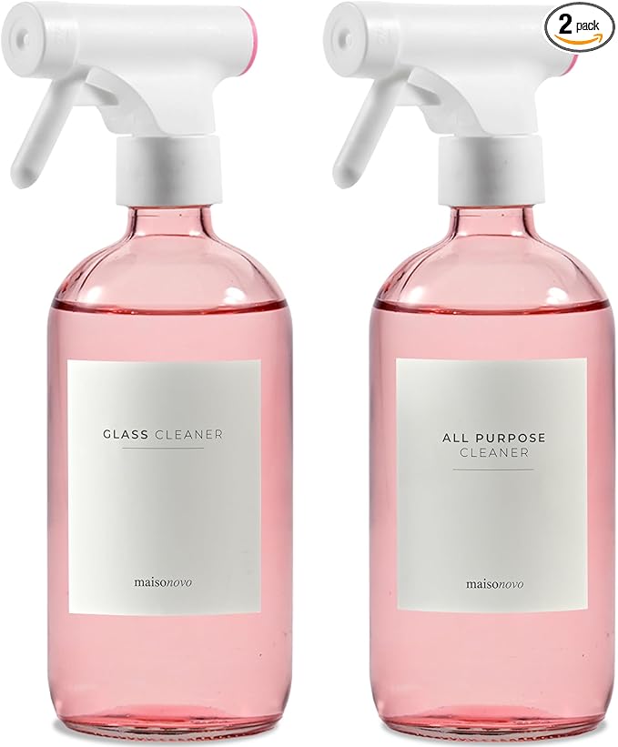 MaisoNovo Spray Bottle for Hair - 16.9 fl oz Pink x 2 with 16 Labels