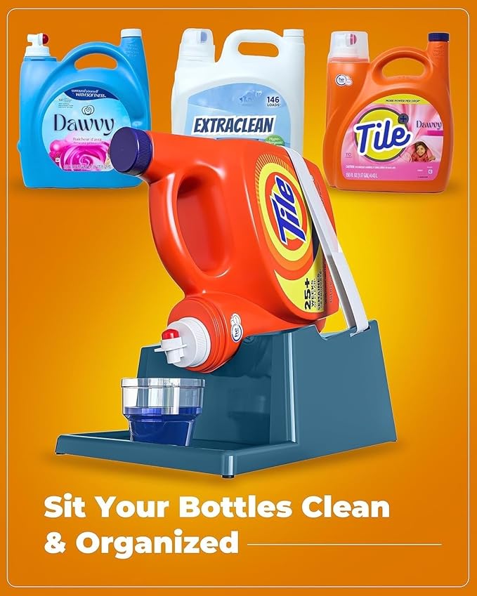 - [Versatile Fit:] The liquid laundry detergent holder station's optimal size (7.9"L x 12.2"W x 5.5"H) accommodates various bottle sizes, providing a perfect fit for most detergent containers without taking up too much space. (Laundry Soap, Cup, and Bottles NOT Included)