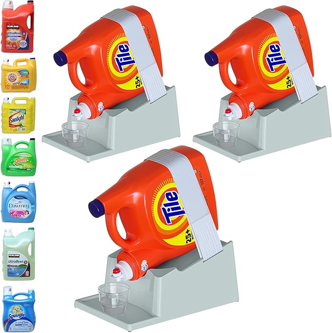 - [Versatile Fit:] The liquid laundry detergent holder station's optimal size (7.9"L x 12.2"W x 5.5"H) accommodates various bottle sizes, providing a perfect fit for most detergent containers without taking up too much space. (Laundry Soap, Cup, and Bottles NOT Included)