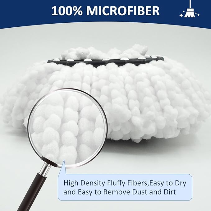- 【Quality Microfiber Mop Heads Refills】- Includes 2 packs mop heads replacements which made of 100% super absorbent microfiber . Effortlessly clean dirt and dust from hardwood, ceramic tile, laminate, marble, and glass.Durable and machine washable.