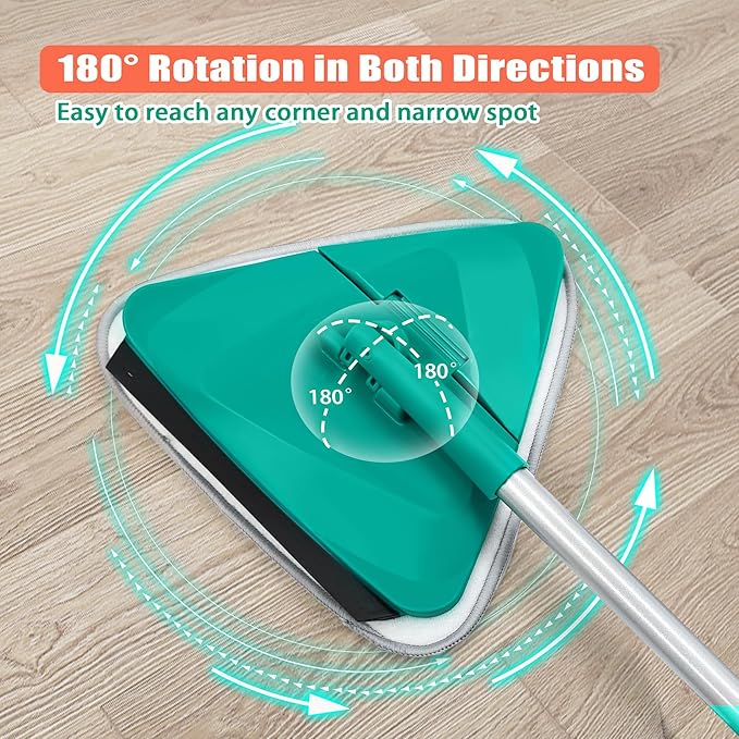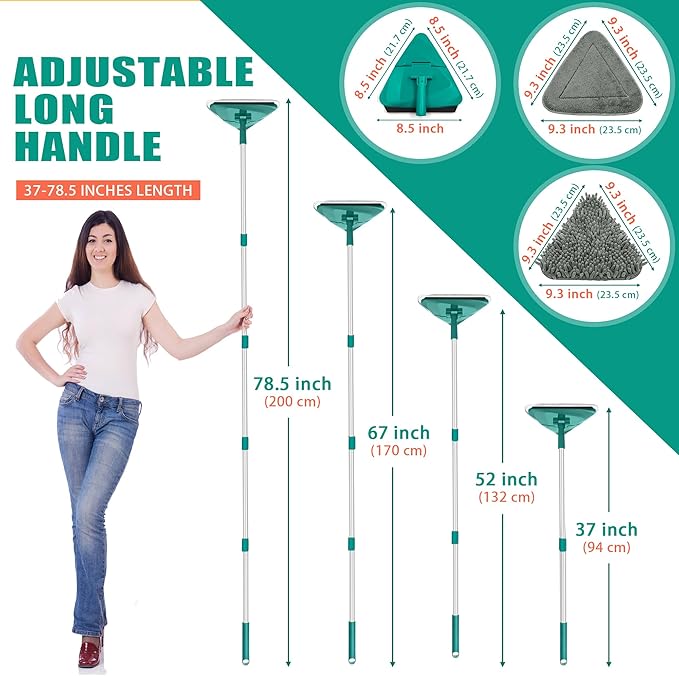 - 6 PCS PADS FOR DRY & WET USE: The triangle mop comes with 3 Pcs microfiber pads and 3 Pcs chenille pads. The microfiber pads can be wet-used for mopping and window cleaning, while chenille pads can be dry-used for dusting and removing spider webs.