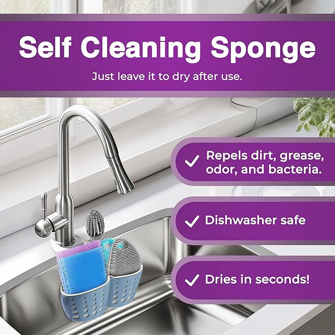 - KIinder to the planet - and safer for your family. Did you know that when a sponge starts to smell, it means millions of tiny and potentially dangerous microbes are trapped in it? that's why we've made our durable, BPA-free silicone dish scrubber dishwasher-safe - so you can easily eliminate all of that.