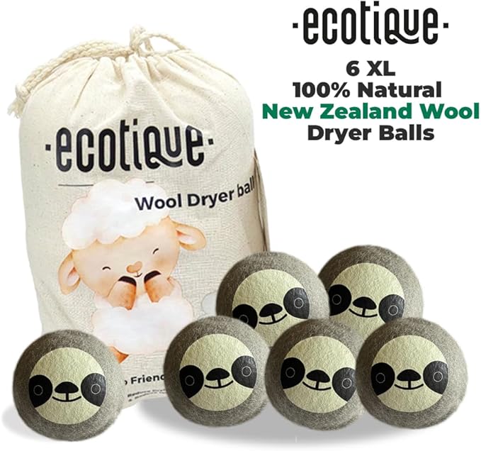 Wool Dryer Balls 6-Pack XL 100% New Zealand Wool Reusable for 1000+ Loads Baby-Safe Chemical-Free Natural Fabric Softener Reduces Drying Time Wrinkles Static Dryer Sheet Alternative