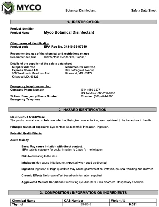 Myco Botanical Disinfectant Cleaner – Natural Plant-Based Ready-to-Use EPA-Registered Disinfectant Spray for Mold, Mildew, Germs, Bacteria & Viruses – Safe for Home & Commercial Use, 1 Gallon