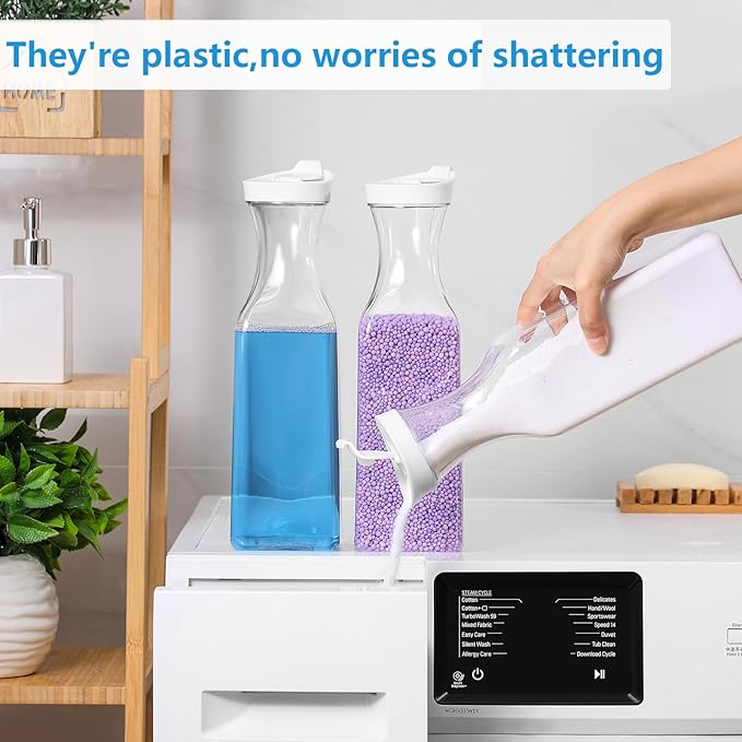 - 【One bottle for multiple uses】You can fill anything you want,washing powder,detergent,softener,scent booster beads,bleach and so on.