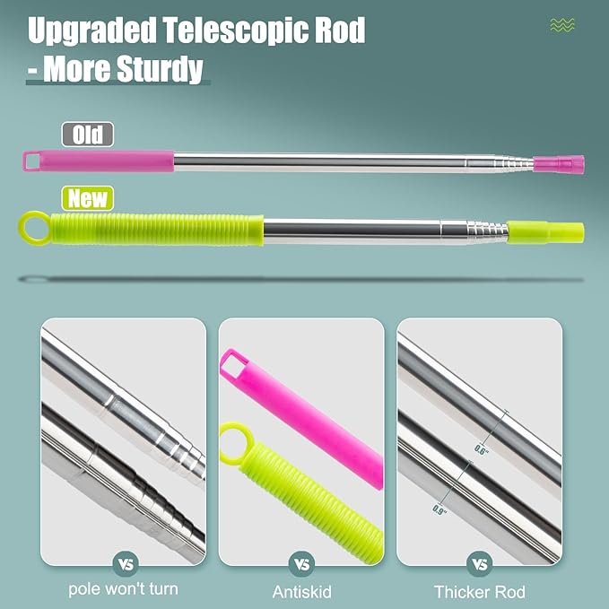 - [New Improved Extension Pole]: The microfiber duster with extension pole is very practical and sturdy . Because we upgraded the extension rod , thickened the thickness of the rod, effectively solving the problem of ceiling fan dust cleaner fracture.What’s more, the telescopic rod can extend up to 81 inches, so you can easily remove dust with extension pole