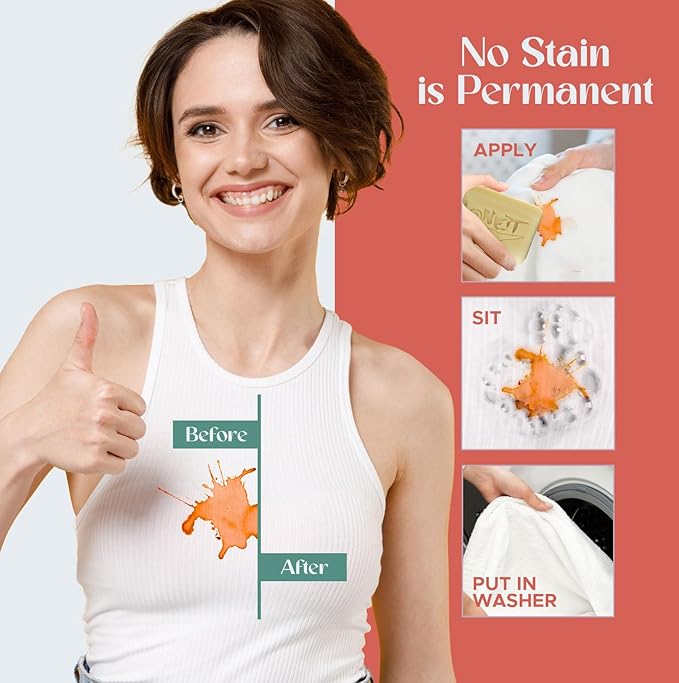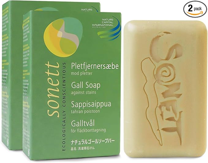 Sonett Organic Bar Stain Remover For Clothes- Concentrated Laundry Stain Remover Detergent Gall Soap For Deep Cleaning- Highly Effective Against Ink, Blood, Grease, Fruit Stains- 4oz, Pack of 2