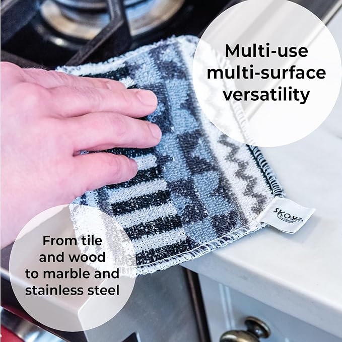 - SUSTAINABLE CLEANING PRODUCT - We care about the planet. The Skoy Scrub is made in Europe from remnant fibers from the toweling industry. So when you choose Skoy Scrub, you're choosing a cleaner and brighter future.