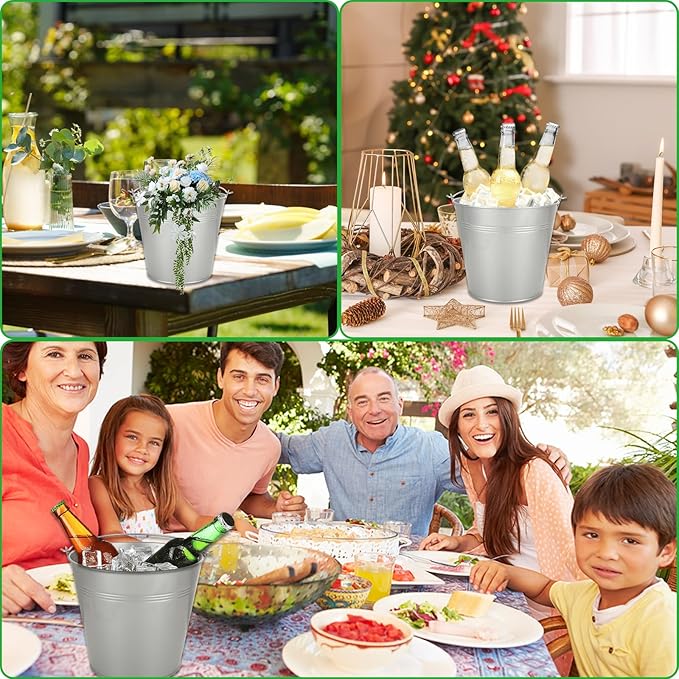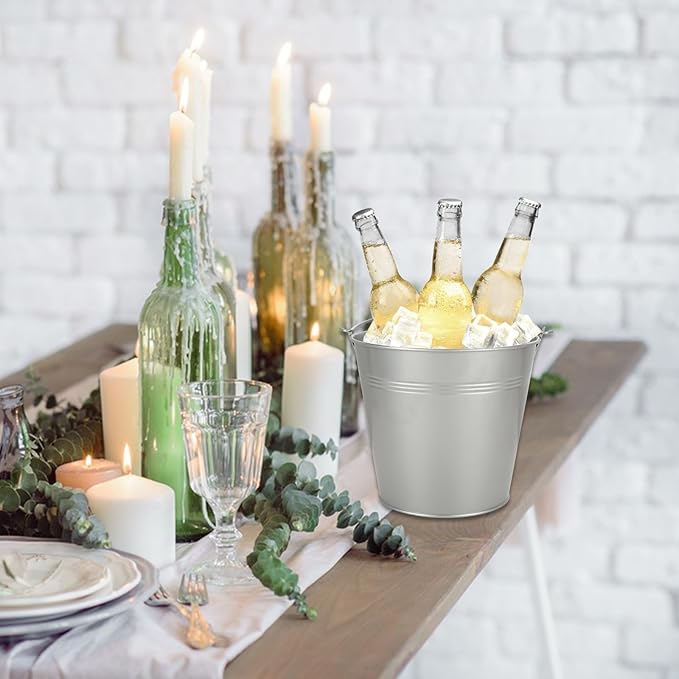 - Wide Application - The small metal buckets are perfect for serving beer, soft drinks and champagne; they are also perfect for placing flowers as centerpieces or rolling up silverware and utensils. Perfect for party celebrations, birthday celebrations, barbecue gatherings, summer pool parties and home décor!