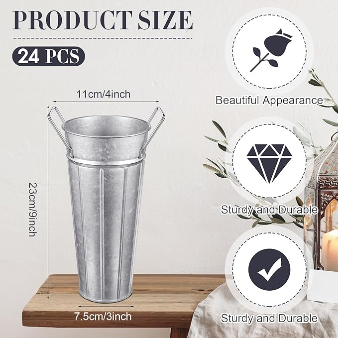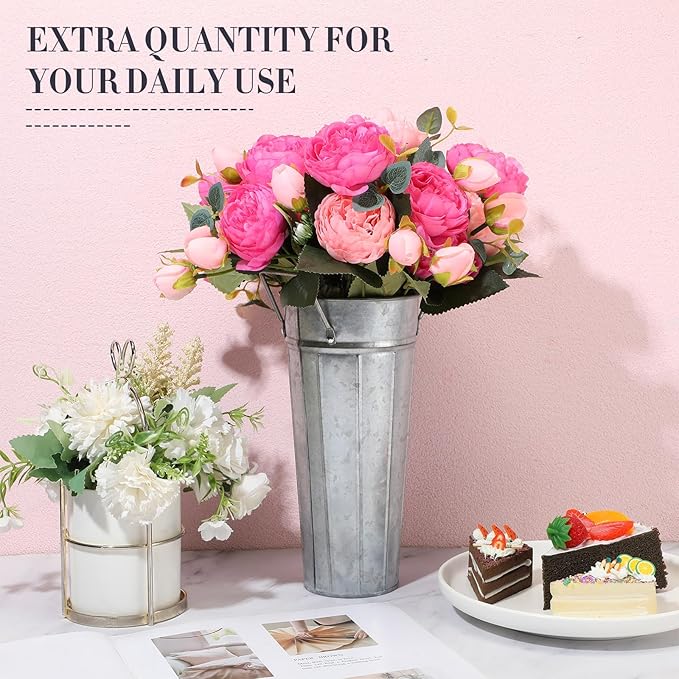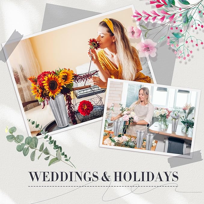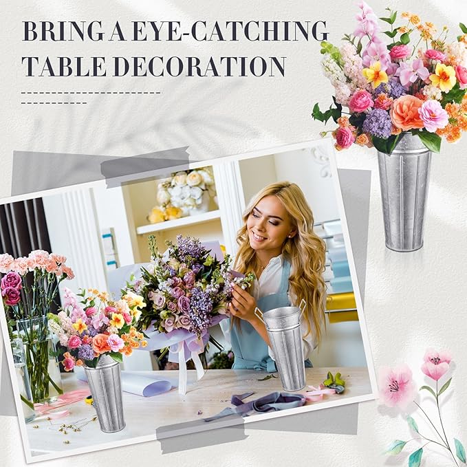 - Rustic Metal Flower Vases: these functional and decorative tall galvanized metal flower bucket vases have 4 point connected sturdy handles, and a hammered metal finish; Pair them with real, artificial flowers or plants to complete the vintage french country look