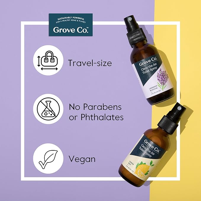 - NATURAL SOLUTION TO TOILET ODOR: Before you go, be prepared with Grove Co. Clear the Air Toilet Spray, a toilet odor eliminator spray made with 100% natural fragrance. This lavender scented bathroom spray provides an effective solution to toilet odor