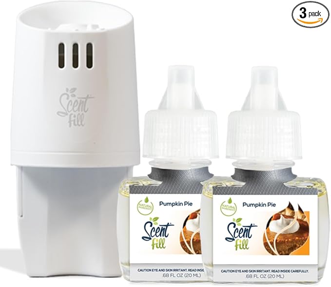 Scent Fill Pumpkin Pie Plug in Air Freshener, Scented Oil Refills, 2 Refills + Diffuser