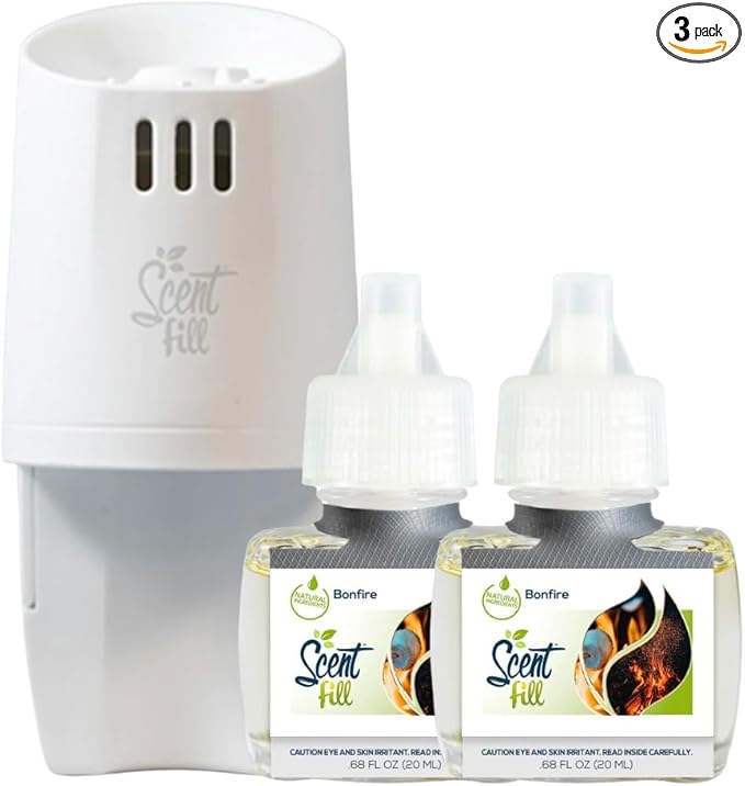 Scent Fill Bonfire Plug in Air Freshener Starter Kit, 2 Refills + Diffuser