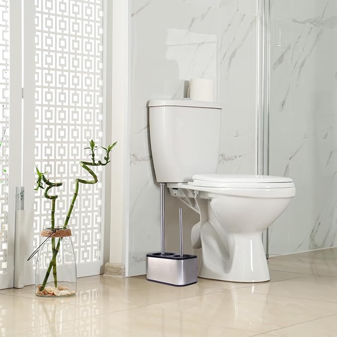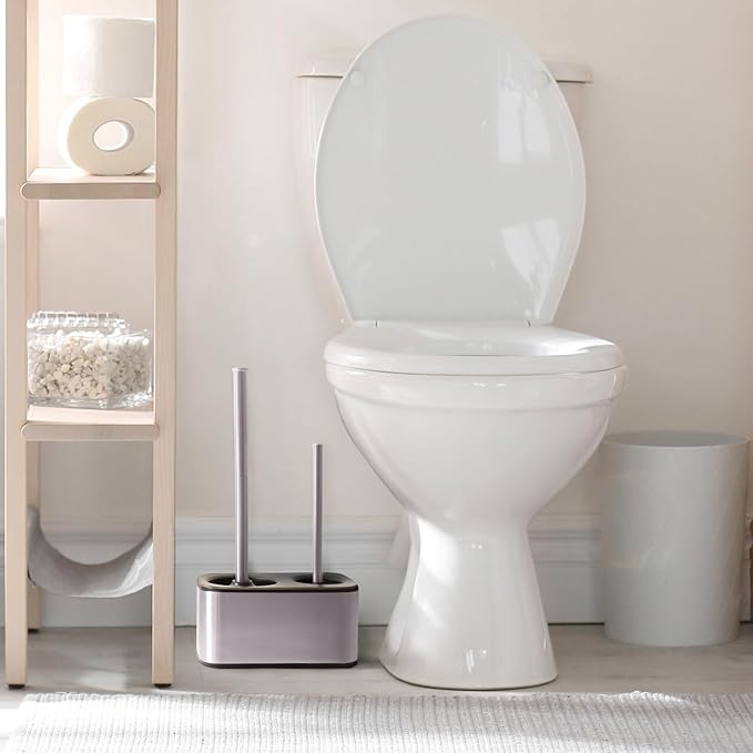 Blue Donuts Toilet Brush and Plunger Set with Holder, Sleek Minimalist Modern Stainless Steel Bathroom Accessories Toilet Plunger and Toilet Bowl Brush Combo