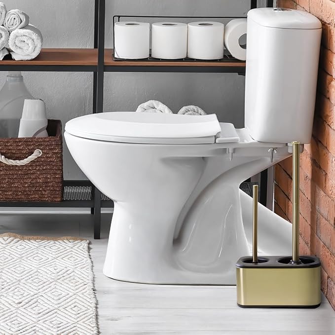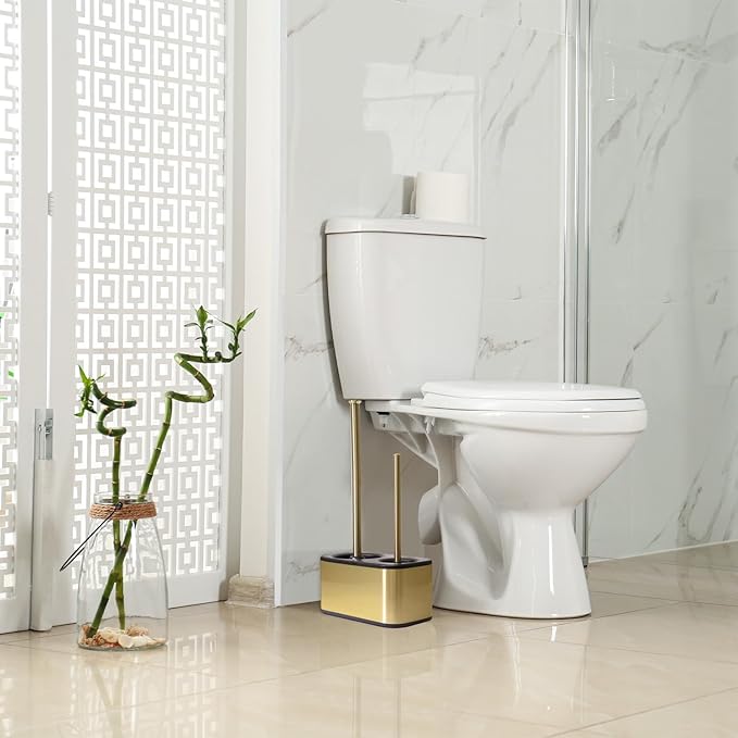 Blue Donuts Toilet Brush and Plunger Set with Holder, Sleek Minimalist Modern Gold Bathroom Accessories Toilet Plunger and Toilet Bowl Brush Combo
