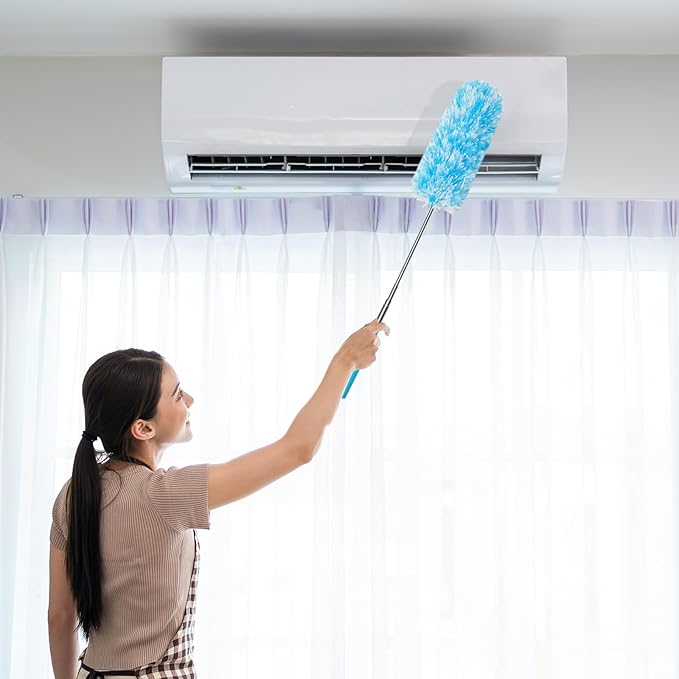- Washable and Easy to Clean: the ceiling fan duster is washable, which is suitable for wet or dry use;It is recommended to check before use to ensure the stability of the extension rod. Attention should be paid to avoiding contact with sharp edges during use. If the product is damaged, stop using it to avoid scratching yourself