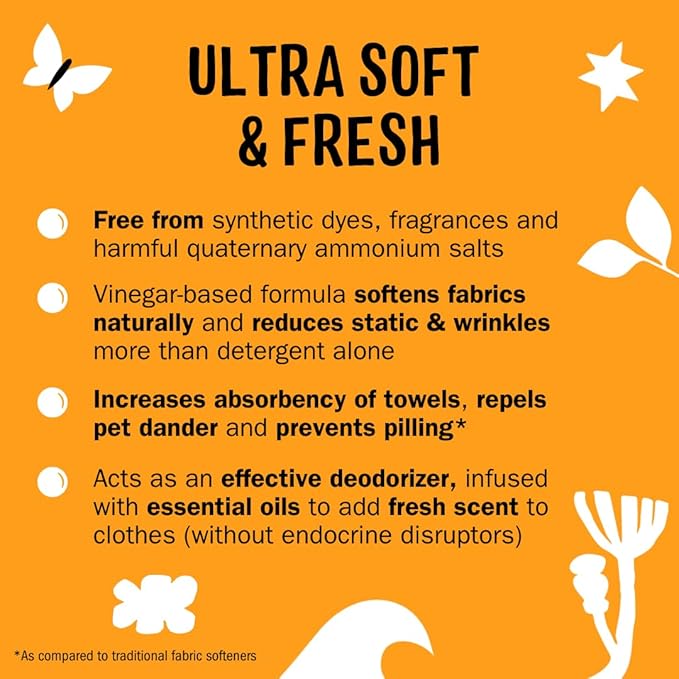 - SOFT, STATIC FREE CLOTHES: Unlike traditional fabric softeners that can deposit residues on clothes, Molly’s Suds vinegar-powered Fabric Softener uses simple ingredients (no harmful quaternary ammonium compounds!) to leave clothes feeling fresh, cozy, and comfy. Ideal for sensitive skin, the planet, and all washing machines. Our clean formula reduces static and wrinkles more than detergent alone, so you and your family can look and feel your best.