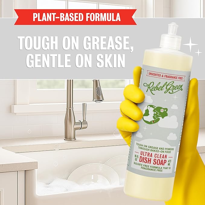 - Fresh & Clean: Kissed with essential oils, Rebel Green's plant-based dish soap provides an effective dish wash that cleans both hands and dishes gently and effectively.