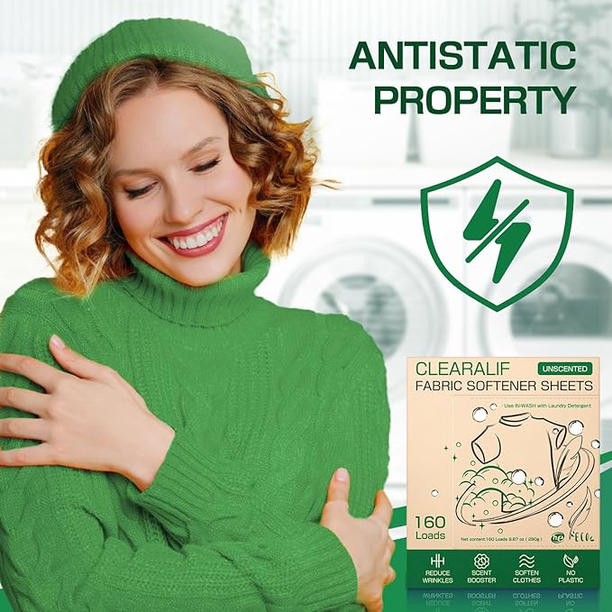 - The agitation, spinning, and heat of the laundry process can damage clothes at the fiber level.Use clearalif laundry softener sheets to reduce damage caused by fiber friction,Enhance softness.
