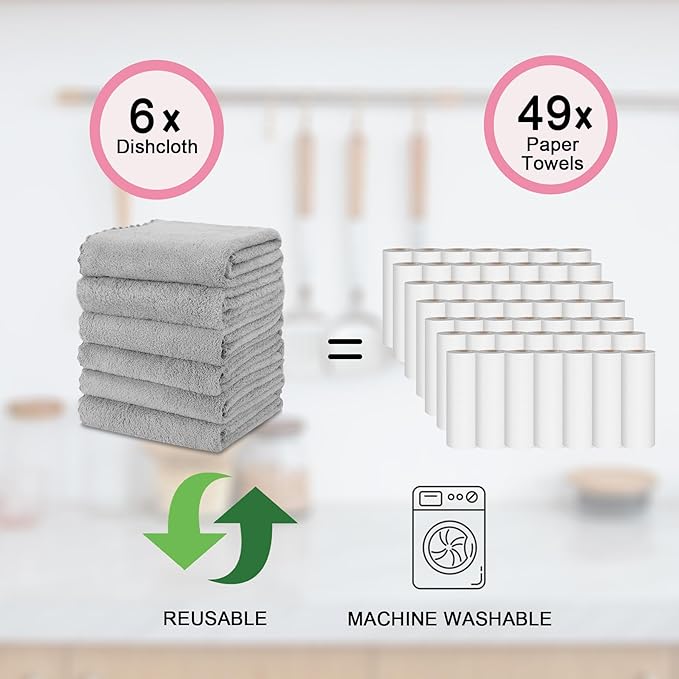 kimteny Kitchen Cloth Dish Towels, 13x28 Inches Premium Dishcloths, Super Absorbent Coral Velvet Microfiber Cleaning Cloths, Fast Drying Rags for Washing Dishes (13x28-6 Pack, Grey)