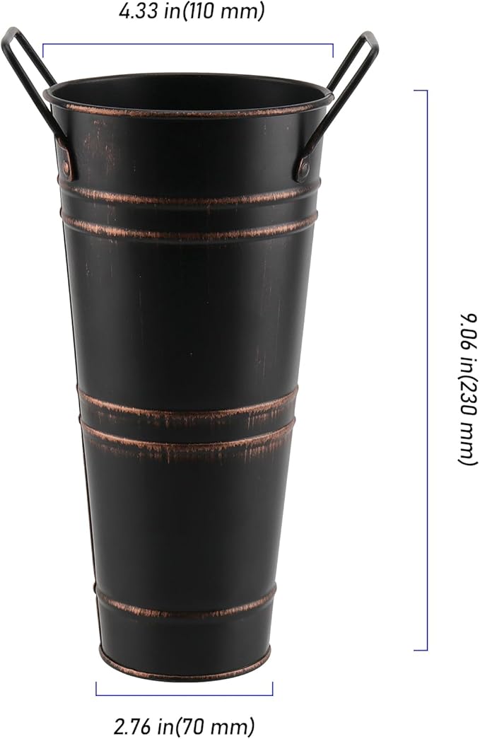 - PREMIUM MATERIAL - These flower buckets are made of a high-quality thickened galvanized iron. It will not rust and corrosive. It has fine workmanship. The surface of the galvanized flower bucket is black spray paint, exquisite and lovely.