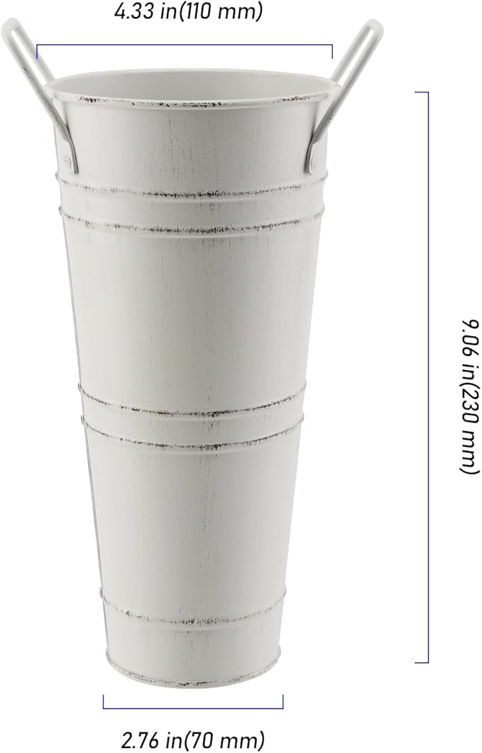- RUSTIC BUCKET - Our galvanized flower bucket combines the timeless appeal of rustic aesthetics with a touch of modern elegance. The white color and galvanized finish add a farmhouse French flair that effortlessly complements various decor styles.