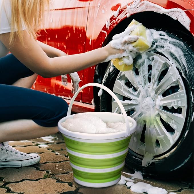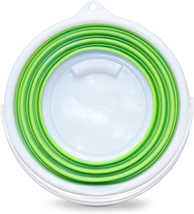 - PORTABLE BUCKET WITH HANDLE – Folding bucket is great for on-the-go and the perfect compact cleaning tool for RVs and campers. 2.6 gallon bucket boasts a sturdy handle for an easy carry.