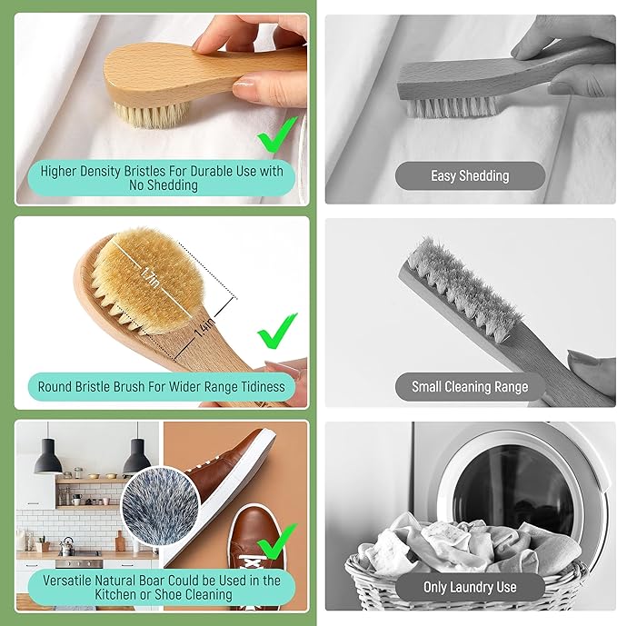 - Built to Last: Designed to withstand daily use, the stain remover brush is built to last. High density natural wild boar bristles avoided the problem of shedding. You won't have to worry about replacing this brush for a long time