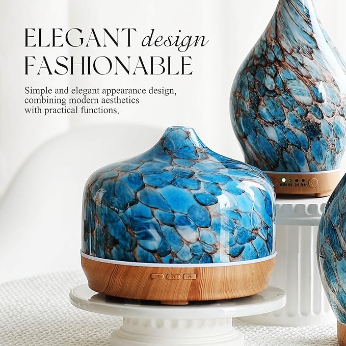 - UNIQUE ART DECORATIVE DESIGN - Our 500ml glass essential oil diffuser has an elegant starry pattern glass cover and wood grain decorative base.It is very suitable for your bedroom, living room, children's room, study room, office and yoga room.