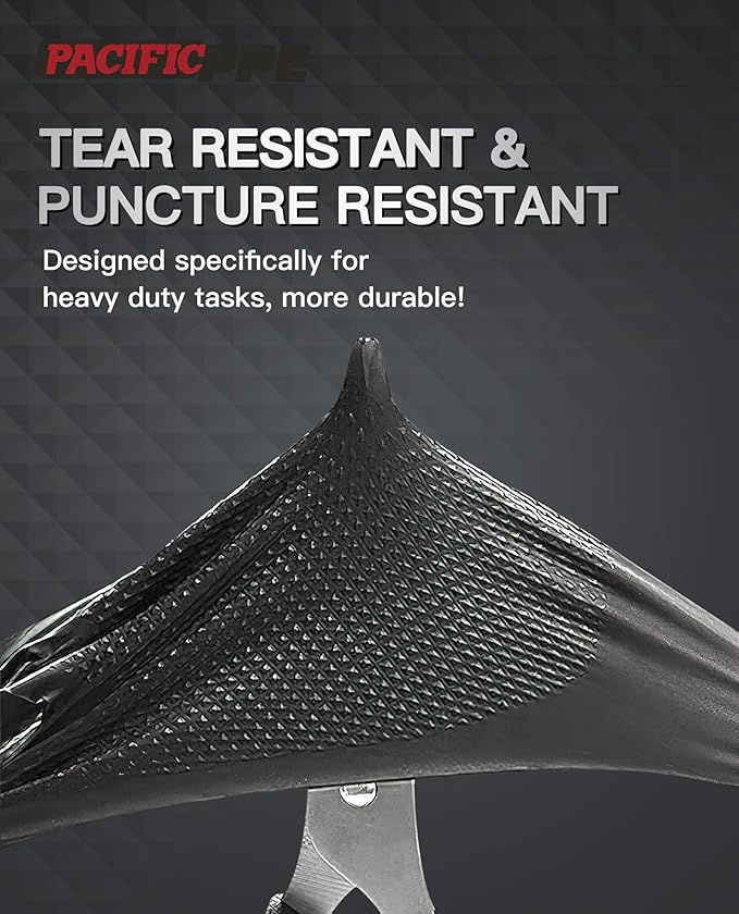 PACIFIC PPE 8 Mil Heavy Duty Black Nitrile Gloves, Food Safe, Latex Free, Mechanic, Fully-Diamond Textured Grip Industrial Disposable Gloves, Medium