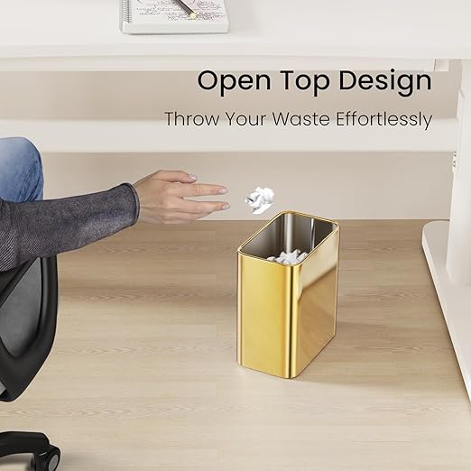 Cesun Small Bathroom Trash Can 2.1 Gallon Wastebasket, Modern Metal Garbage Can Office Waste Basket, Gold Stainless Steel Trash Bin for Bedroom, Home Office, Toilet, rv, Near Desk, Under Sink