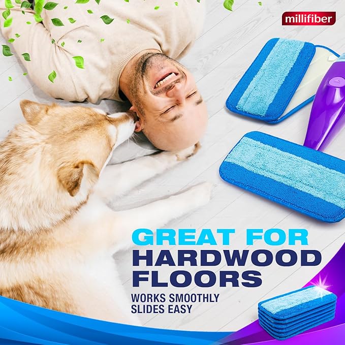 Reusable Mop Pads Compatible with Swiffer WetJet (6 Pack) - Microfiber Mop Refill for Wet Mopping Cloths - Hardwood Floor Cleaning Spray Pads are Reusable Replacements