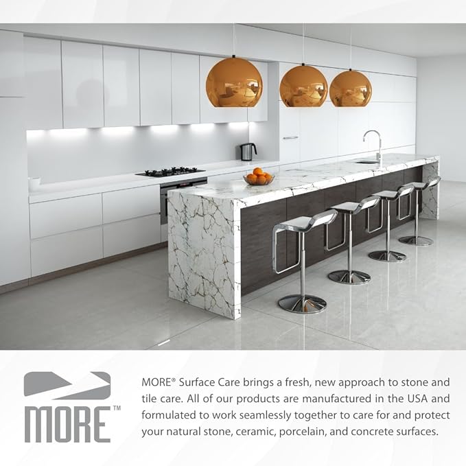 - MORE - MORE Surface Care brings a fresh, new approach to stone and tile care. Every product in the MORE line is manufactured in the USA and formulated specifically to work seamlessly together to care and protect your natural stone, ceramic, porcelain, and concrete surfaces. Our products are safer and easier to use, without sacrificing quality or results.